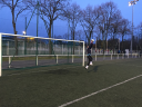 Faute d’Izidine à 25m, le coup-franc cadré n’est touché par personne et Matthieu G. gêné par des adversaires ne peut empêcher le ballon de mourir dans le petit filet (47') |